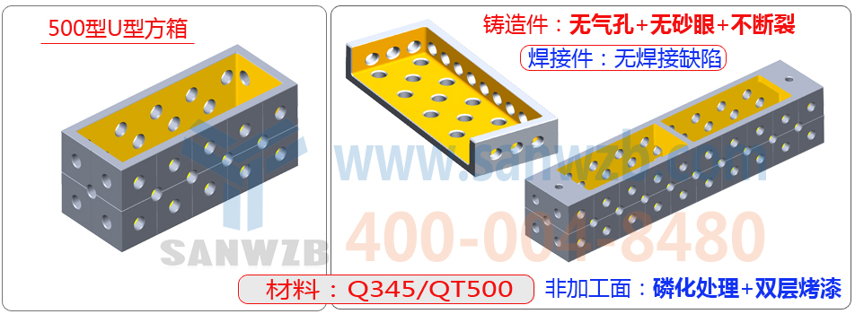 2、我们的三维柔性铸铁工装平台的材质,采用正牌的HT300原生材料,正规品牌的铸造厂家,有严格的材质报告及铸造质量保障;